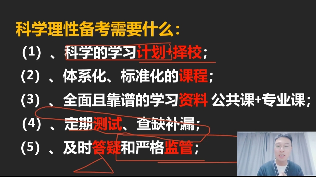 等高校2022年的研究生报考录取情况为例,为同学们介绍了当前考研的大形势和新风向。他说到;“正确的选择和努力同样重要”,院校和专业选择过程中要回归实际。复习备考规划版块,栗老师着重从时间分配与方法选择两方面为同学们进行了分享,详细介绍了政治、英语和专业课的具体考试特点和备考方向。
