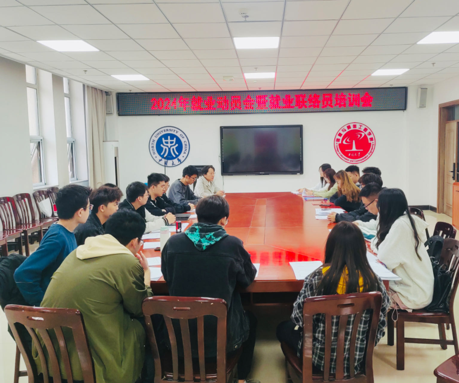 在在713会议室召开2024届毕业生就业动员会暨就业联络员培训会,院党委副书记兼副院长魏媛媛、就业辅导员孟伟、毕业班就业联络员参加。