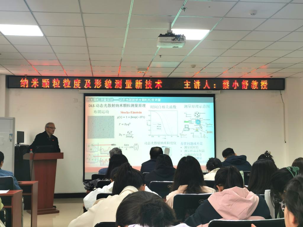 在讲座中,蔡教授主要围绕团队近10年来在纳米颗粒测量方法上开展的研究作介绍,首先阐述了图像动态光散射法,在此基础上提出了偏振图像动态光散射测量方法。最后基于后向动态光散射的高浓度纳米颗粒粒度测量方法,介绍了一系列新型的微型便携式纳米粒度仪。