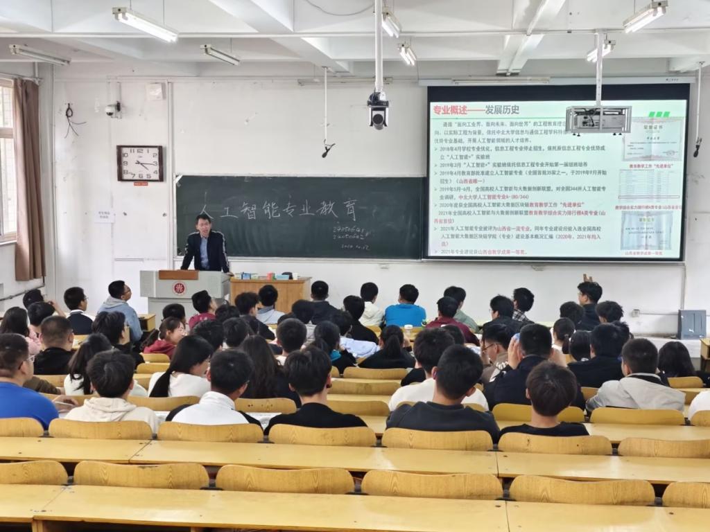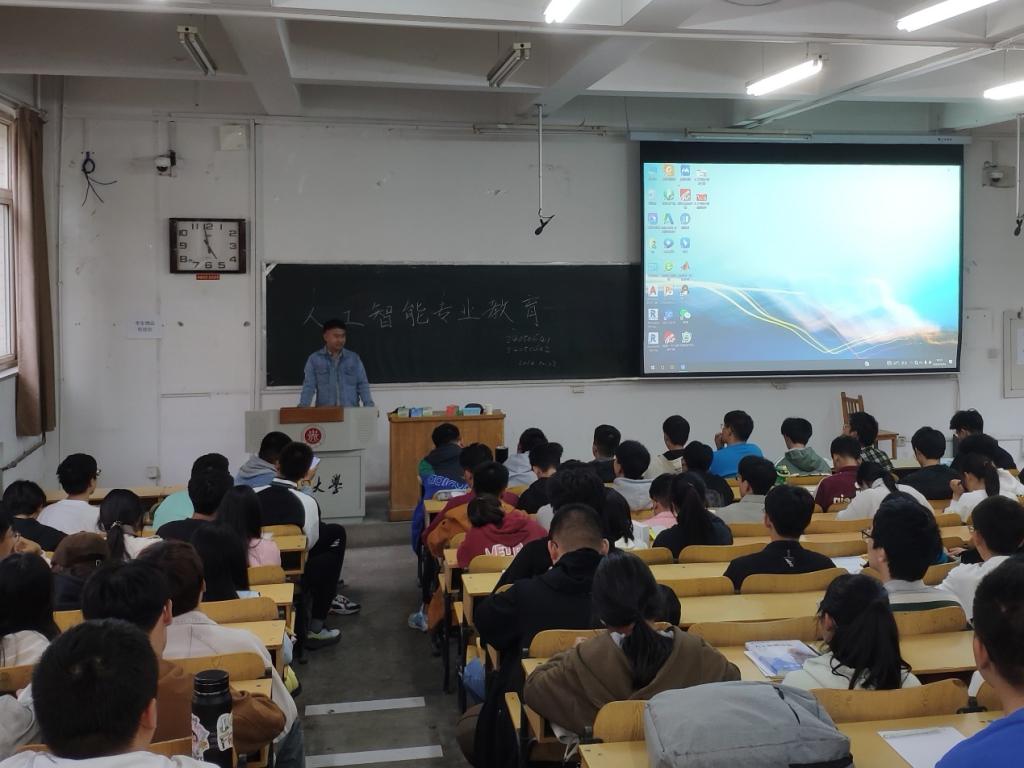 首先,人工智能系主任李剑教授作开篇致辞,为新生们带来了一场精彩的专业导论讲座。李剑教授深入浅出地介绍了人工智能学科的前沿发展以及未来的广阔前景。并重点介绍了人工智能专业的前身及发展近况,通过培养目标、培养方案、课程设置、师资力量、实验室资源等方面全方位详细介绍了专业实力。他指出,金沙
