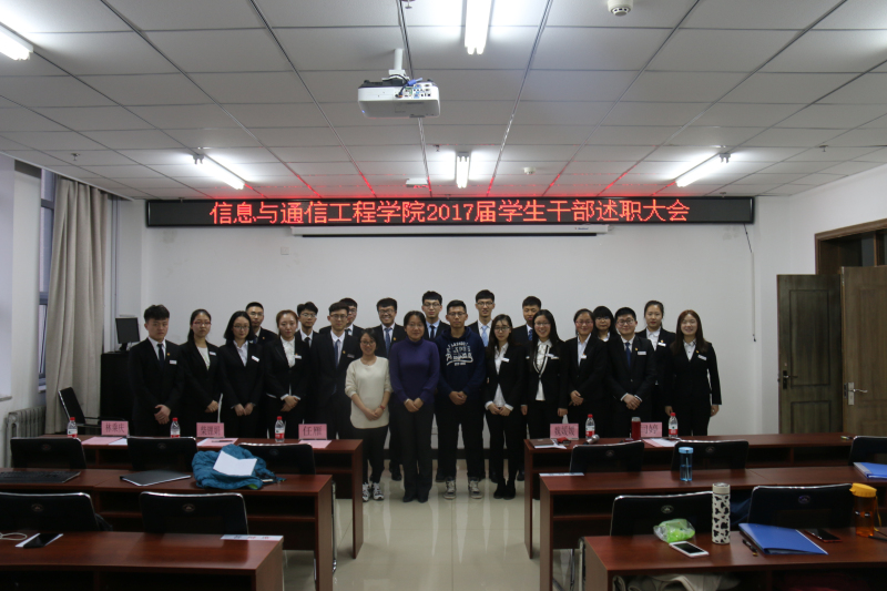 在院楼会议室举行17届学生干部述职大会。院党委副书记兼副院长魏媛媛、院团委闫婷老师、学生科任雁、柴锂娟、林乘庆老师及17届全体学生干部参加本次大会。