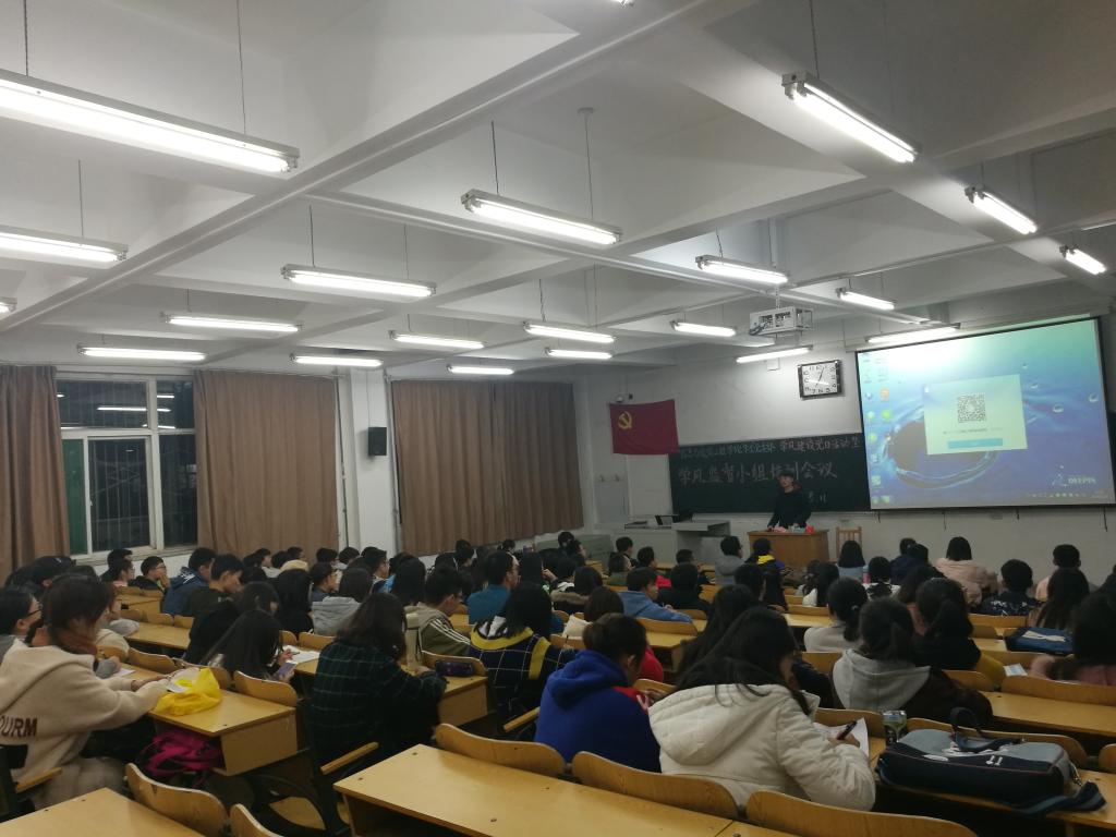 学生党支部于2018年11月9日晚上7点在10102H教室召开“励志成才、爱国奋斗”主题党日活动,本次党日活动紧紧围绕本科教育思想大讨论要求和进一步加强和改进学风建设工作开展。各学生党支部委员、全体学生党员和部分重点发展对象、入党积极分子参加了此次活动。