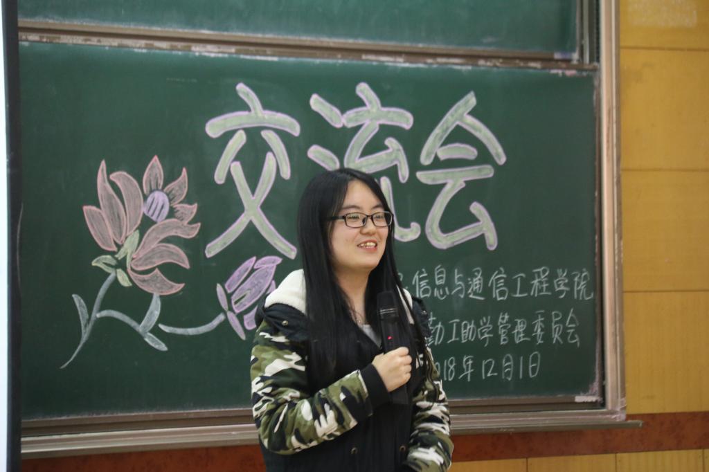 励志奖学金获得者岳佳同学和同学们分享分享了很多自己在学习工作中的感想。岳佳是15级卓越学生,大学期间平均学分绩点4.09分,获得各类奖助学金两万五千余元;曾担任五院科协副主席与17级新生班主任助理并获得3项国家级、2项省级奖项,现已被推免至哈尔滨工业大学。