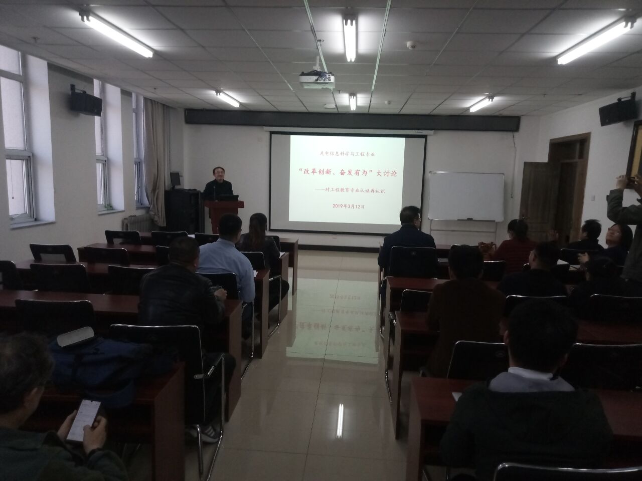 “改革创新,奋发有为”大讨论实施方案》,并结合工程教育专业认证工作,对标北京理工大学,寻找短板,进一步将“改革创新,奋发有为”大讨论和工程教育专业认证工作相结合,聚焦问题求实效。光学工程学科管理部主任程耀瑜提出“改革创新,奋发有为”大讨论应结合金沙