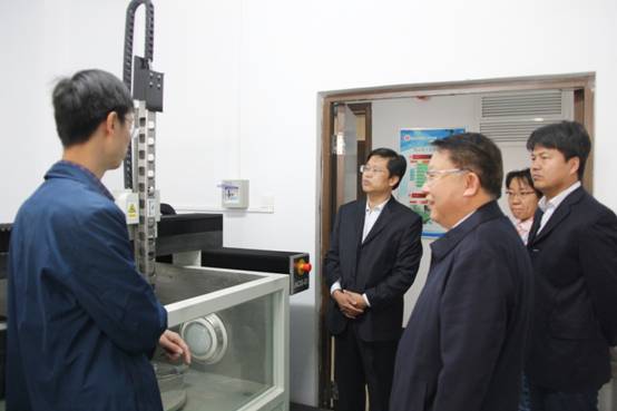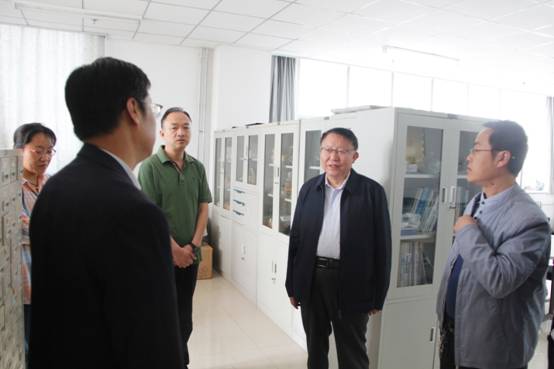 党委书记曹凤才、院长杨风暴陪同下参观了科学楼B座实验室,听取了金沙