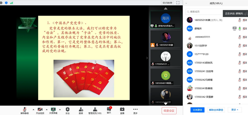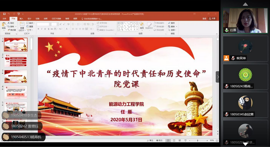 利用腾讯会议平台成功举办了2020年春季院党课开班典礼。参加典礼的嘉宾有:院党委书记曹凤才同志、党委副书记魏媛媛同志、组织员闫霞同志。
