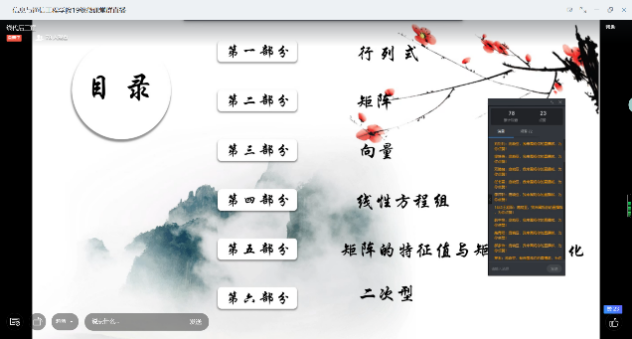 “筑梦启航”学业辅导微课堂一直秉承着一切为了学生的态度,以学生的需求为立足点。首先通过主讲人和同学们的互相交流,找到大家需求的内容并加以重点讲解,在以串讲的形式让同学们对这门课在脑海中有了一定的知识框架,即从宏观了解到微观突破,最后配有线上辅导答疑,带着同学们把知识盲区一一扫除。