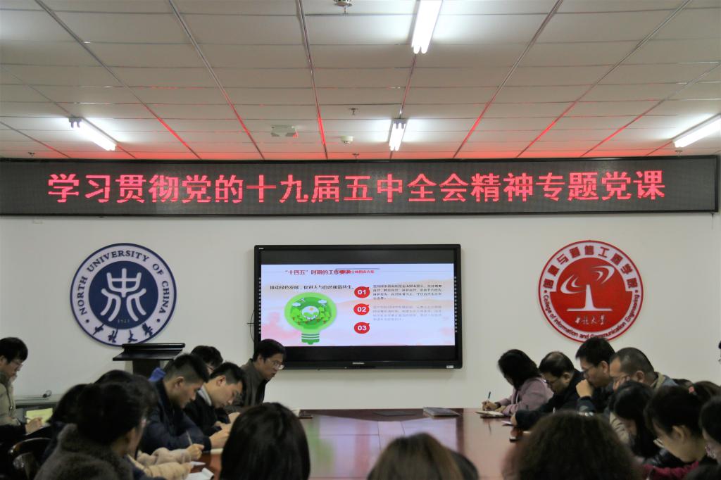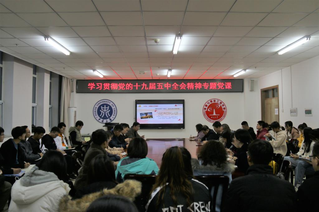 党的十九届五中全会,是站在“两个一百年”奋斗目标的历史交汇点上召开的一次重要会议,是党和国家政治生活中的一件大事,学习宣传贯彻十九届五中全会精神是全党当前和今后一个时期的重大政治任务。2020年11月20日下午5时,在科学楼B座713会议室,金沙