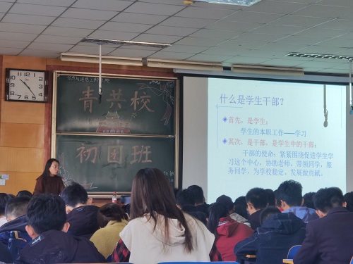 初团班培训中,杜瑞平老师做了题为《做社会主义合格建设者和接班人》的主题授课,杜老师以疫情为引,阐述了“思想政治教育”的重要性,并强调青年干部应养成一颗坚韧之心,具有责任意识。闫婷老师围绕《如何做好一名学生干部》,从学生干部的角色定位、认识定位、工作定位着手,指出做一名合格的学生干部要正确处理个人与集体的关系、奉献与荣誉的关系、学习与工作的关系。