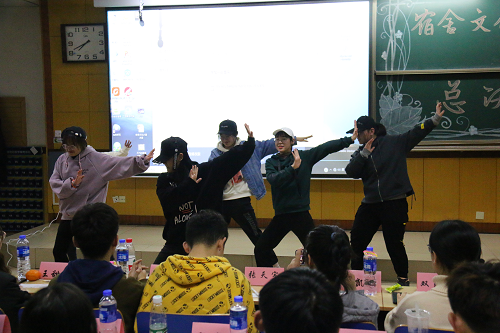 此次晋级决赛的参赛宿舍有文韬四231宿舍、文韬四236宿舍,文韬五122宿舍、文韬五118宿舍、文韬四230宿舍,各参赛宿舍带来的宿舍文化元素丰富,形式多样,有激情热烈的舞蹈表演,有慷慨激昂的朗诵活动,每个宿舍都展示出了不一样的青春姿态。活动中场环节,由学生会宣传部带来的部门大合唱与学生会生活部带来的精彩舞蹈,获得嘉宾及观众的热烈掌声。经过初赛和决赛的激烈角逐,最终由文韬五122宿舍夺得头衔,成功获得一等奖,并由学生科毛凯娜老师为他们颁发获奖证书。