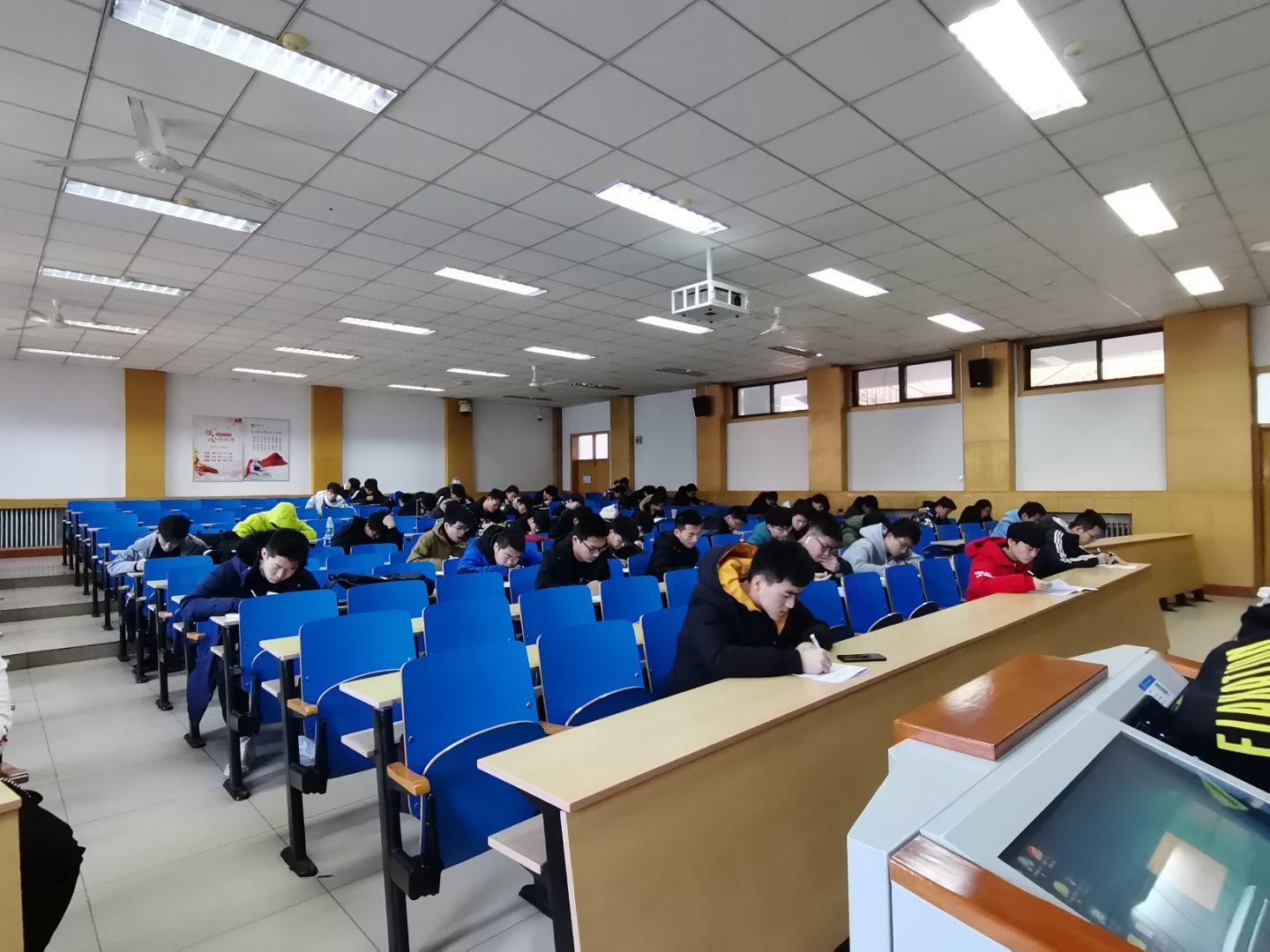 本次考试覆盖学生450余人,严格按照四六级英语考试的正规流程进行,考查范围全面细致,考场氛围严肃紧张,考试过程井然有序。在考验考生的词汇量、句型以及阅读理解等对英语基础知识掌握情况的同时,对考生把握考试时间、心态调节等方面等应试能力也做出了考验。监考人员由金沙