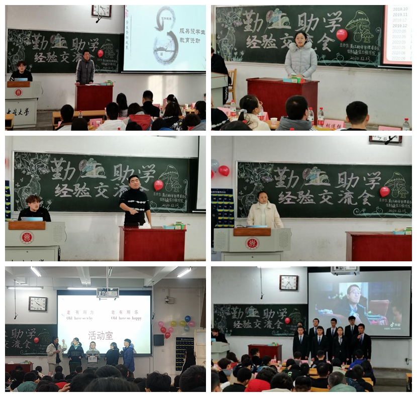 为进一步发挥勤工助学实践育人、劳动育人功能,在广大学生中营造诚信、励志、感恩的良好风尚,引导学生自强自立、积极进取、健康成长成才。2020年12月13日下午,在10101H教室成功举办了勤工助学经验交流会。本次活动邀请了胡傅强老师和三位优秀的学长学姐与大家进行交流。
