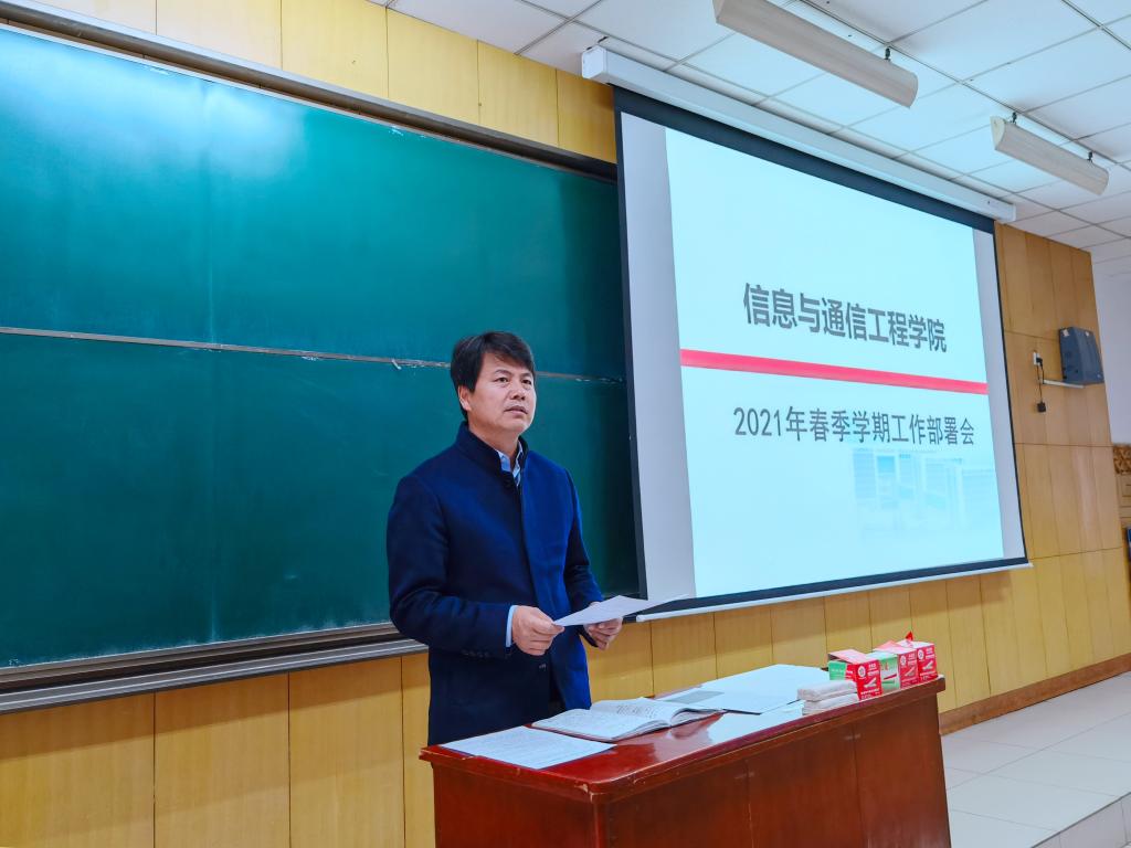 在11208H教室召开2021年春季学期工作部署会。全体院领导、各系主任、副主任、科级干部及全体教师出席。会议由院长杨风暴主持。