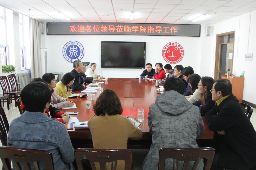 进行人事人才工作专题调研。院党委书记曹凤才、院长杨风暴、电工电子实验教学示范中心主任兼副院长王黎明、党委副书记兼副院长魏媛媛、副院长赵冬娥及金沙