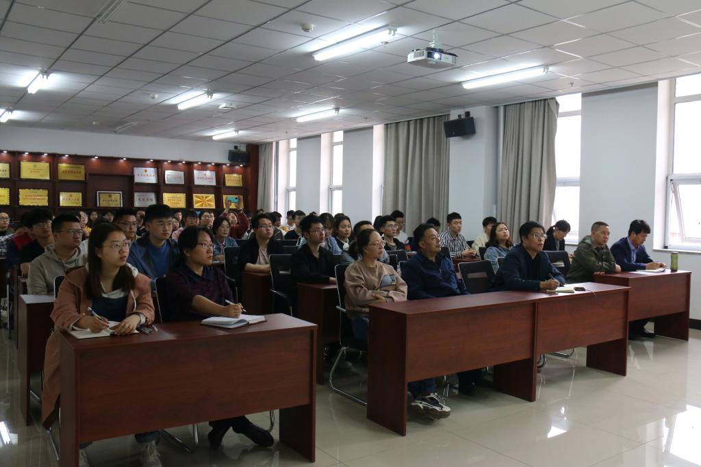 全体院领导及师生党员聆听专题报告,报告由党委书记曹凤才主持。