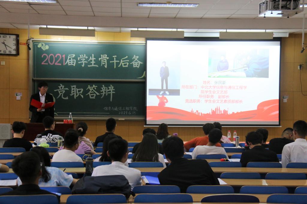 2021届学生骨干竞职答辩会在11508H成功召开。院团委书记闫婷、团委王彪老师出席本次大会并担任评委。