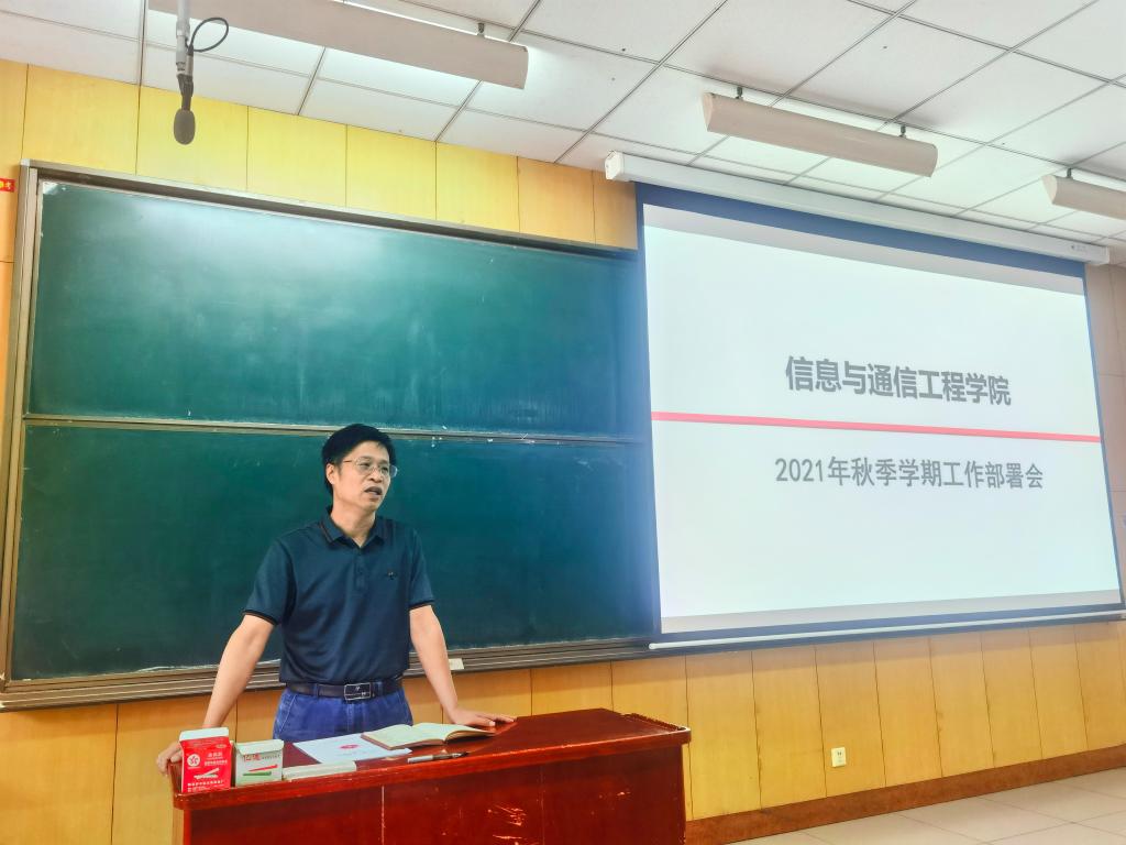 在11308H教室召开2021年秋季新学期工作部署会。全体院领导、各系主任、副主任、科级干部及全体教师出席,会议由党委副书记魏媛媛主持。