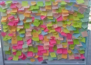 老师和同学的宣传引导下,广大师生在便签上写下对祖国72华诞的祝福以及自己对未来的期盼,并将便签贴在白板上。多彩的便签上是同学们真挚情感凝成的字句,共同组成了一幅美丽的画面。