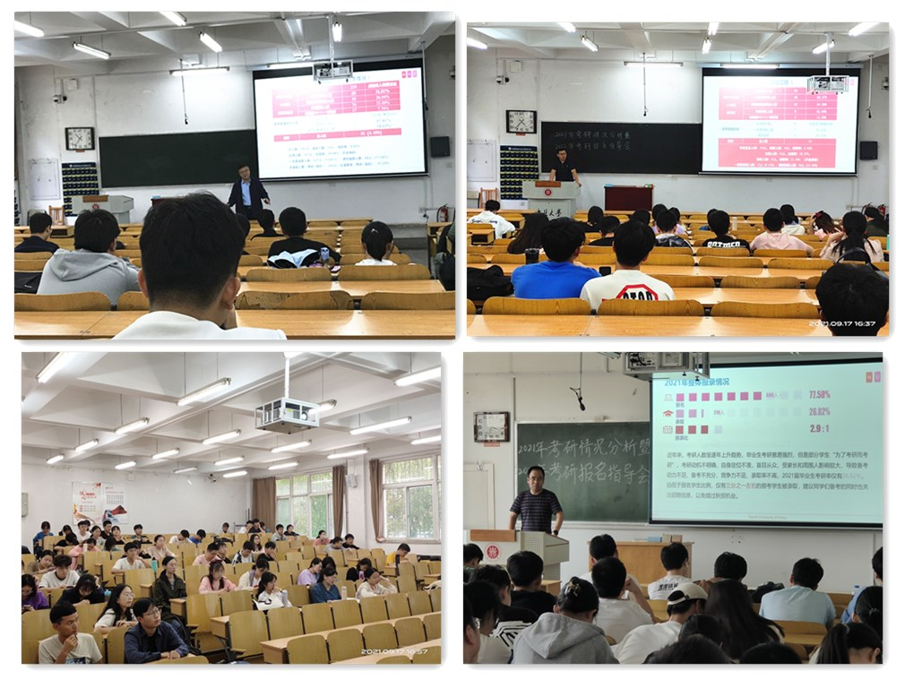 举办2022年考研指导系列讲座,邀请各专业负责人为2018级学生分析2021年考研情及2022年考研形势,指导学生科学报考、认真备考、自信应考。