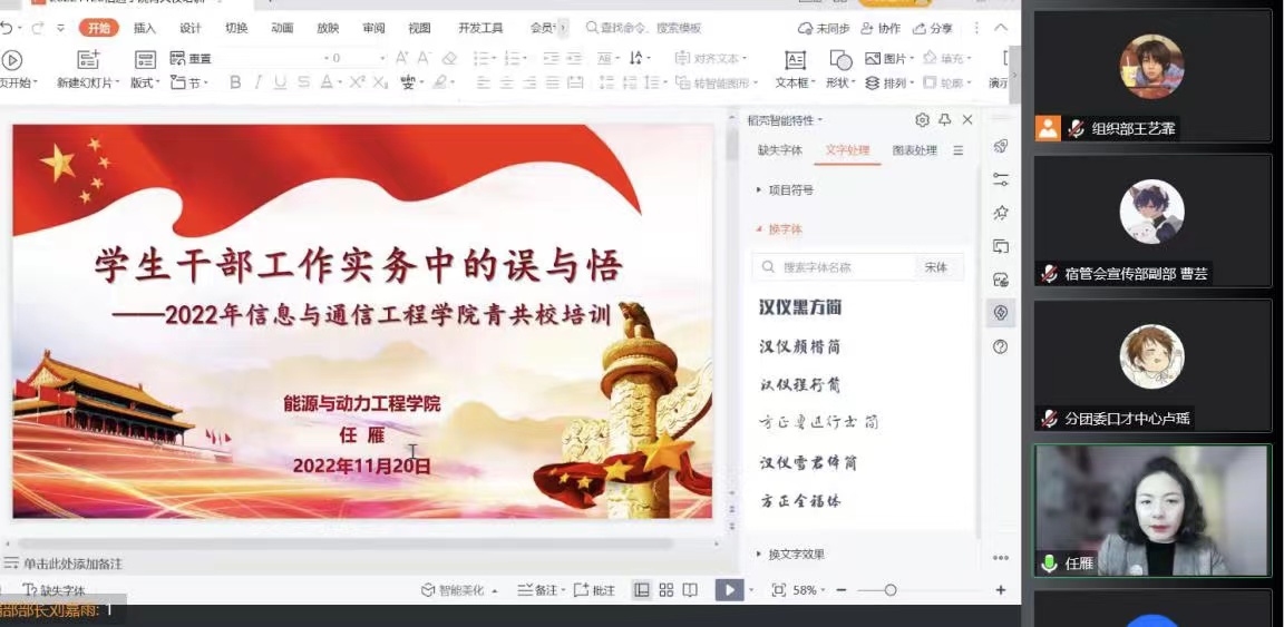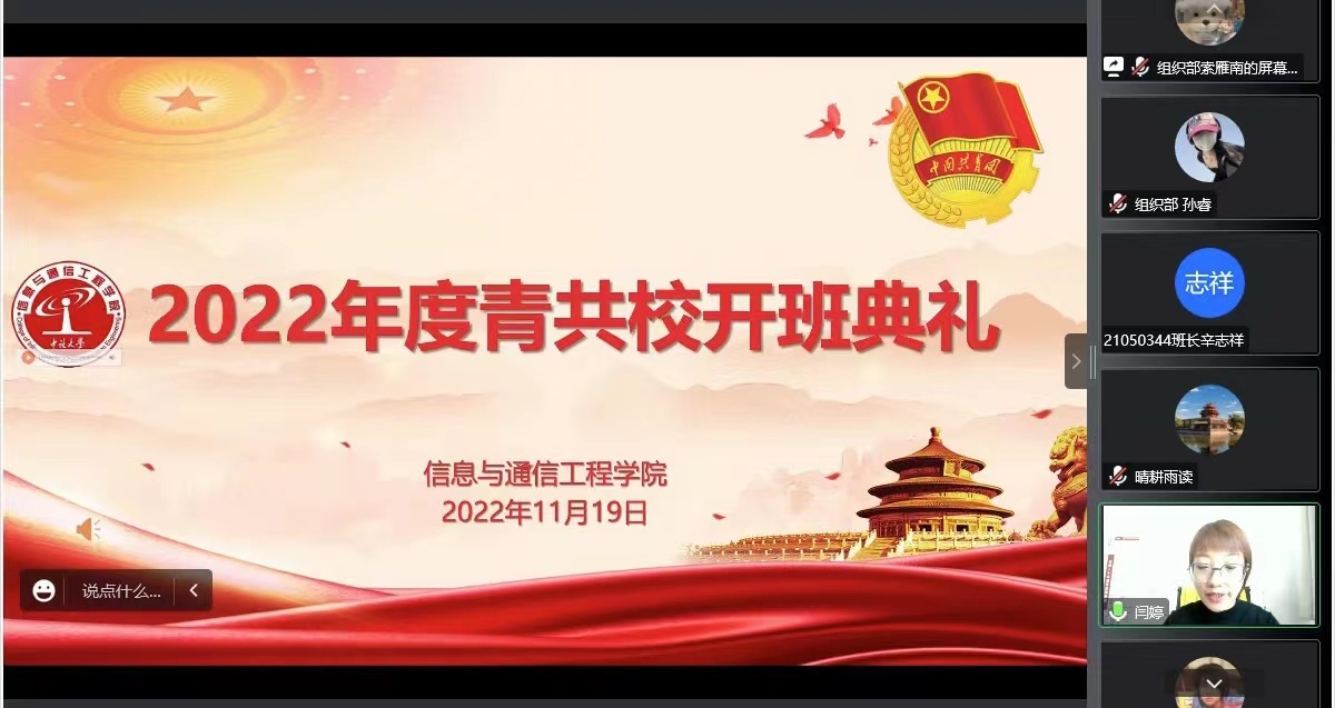 利用腾讯会议平台成功举办第十七期青共校培训班。学院党委书记曹凤才、党委副书记兼副院长魏媛媛、院团委老师王彪出席了开班典礼。典礼由院团委书记闫婷主持,金沙