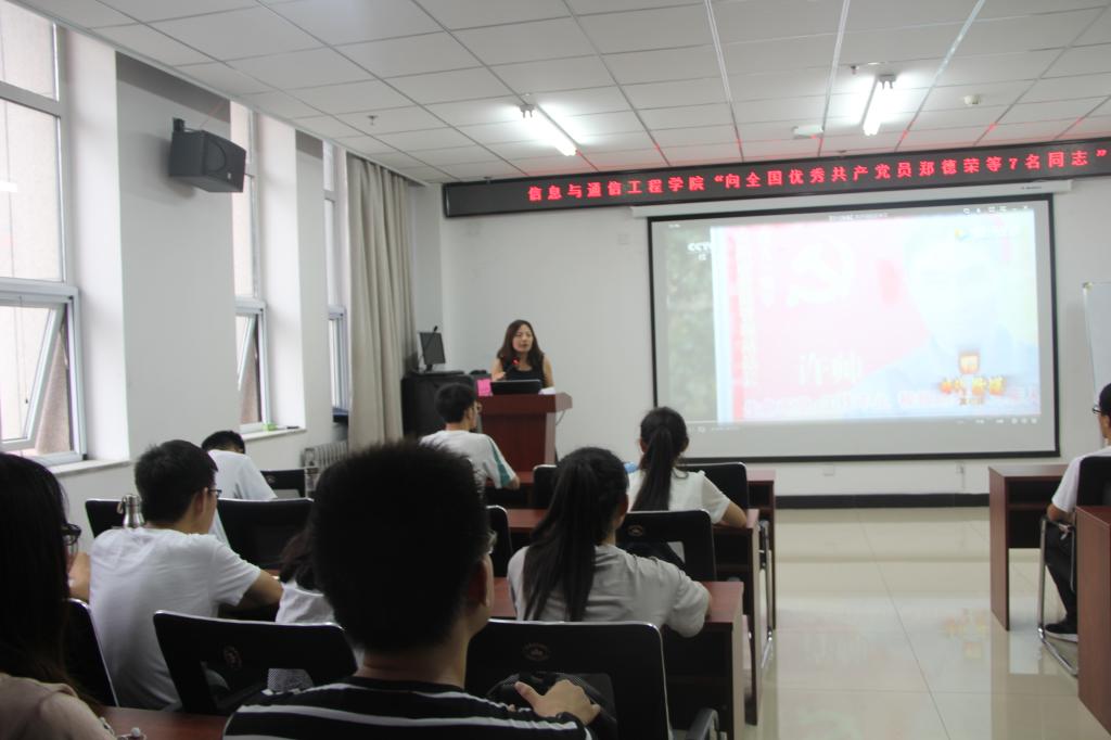 组织暑期在校学生党员、入党积极分子在院楼715报告厅观看了郑德荣等7名全国优秀共产党员的先进事迹,学习他们身上的优秀品质。