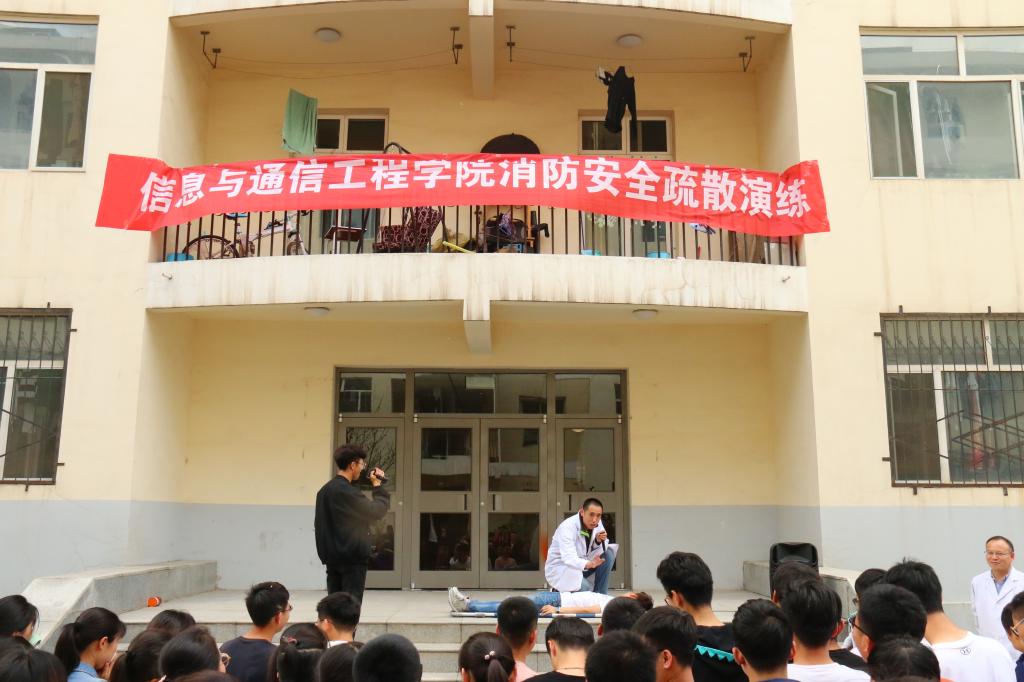 消防安全保护人员组成灭火组、石芳娟老师带领宿管会部分成员组成疏散引导组、邢杰老师及校医院部分医务人员组成安全防护救护组、柴锂娟老师及宿管会部分成员组成后勤保障组,并由大一五个班级参加演练。一切准备就绪后,演练正式开始。