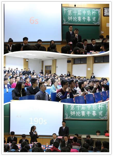 “中信杯”辩论赛的受关注程度和比赛中的精彩瞬间。之后,由学习部部长范子天星同学宣布:“第十届‘中信杯’辩论赛正式开幕。”接着,金沙
