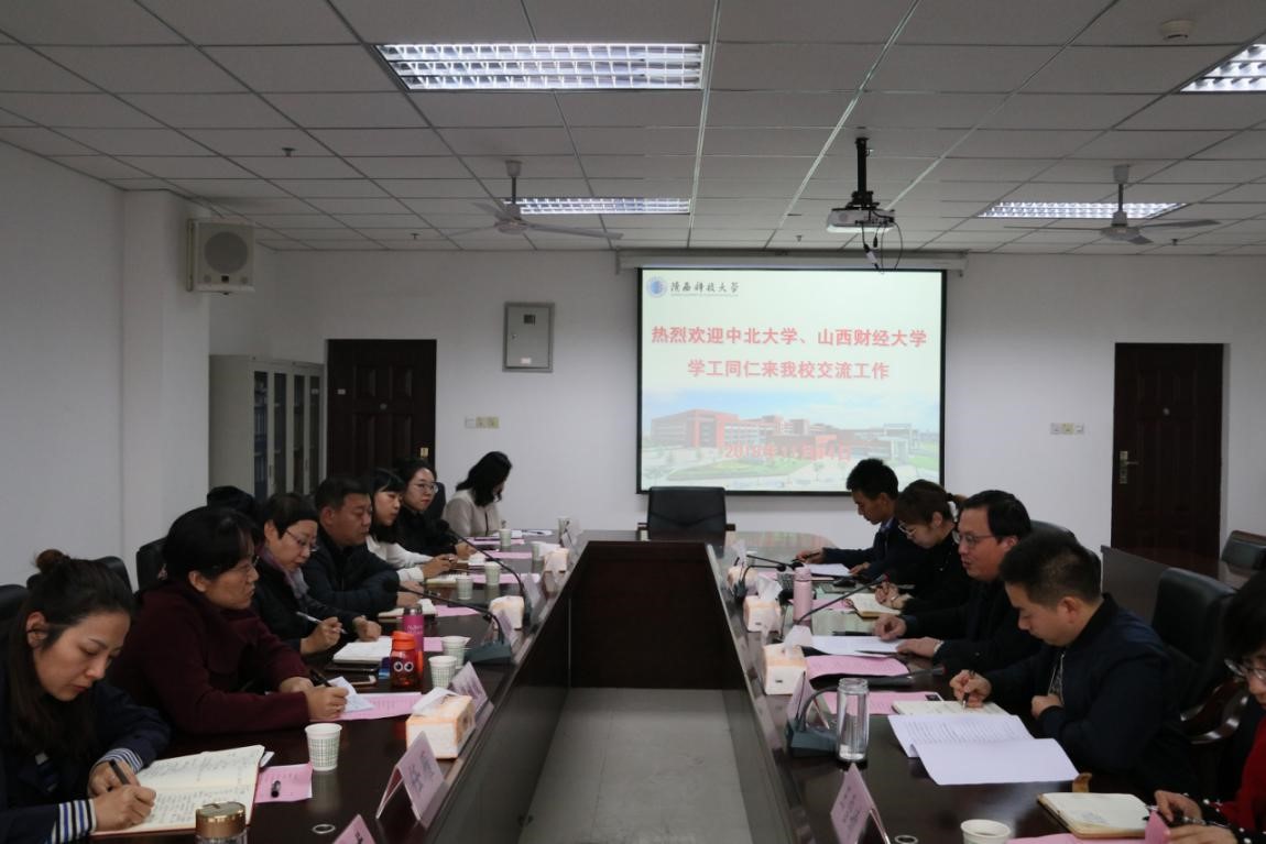 一行3人在院党委副书记兼副院长魏媛媛的带领下,于2018年11月15日赴陕西科技大学就辅导员工作室建设、易班工作、辅导员素质能力大赛工作等方面进行专题学习和调研。
