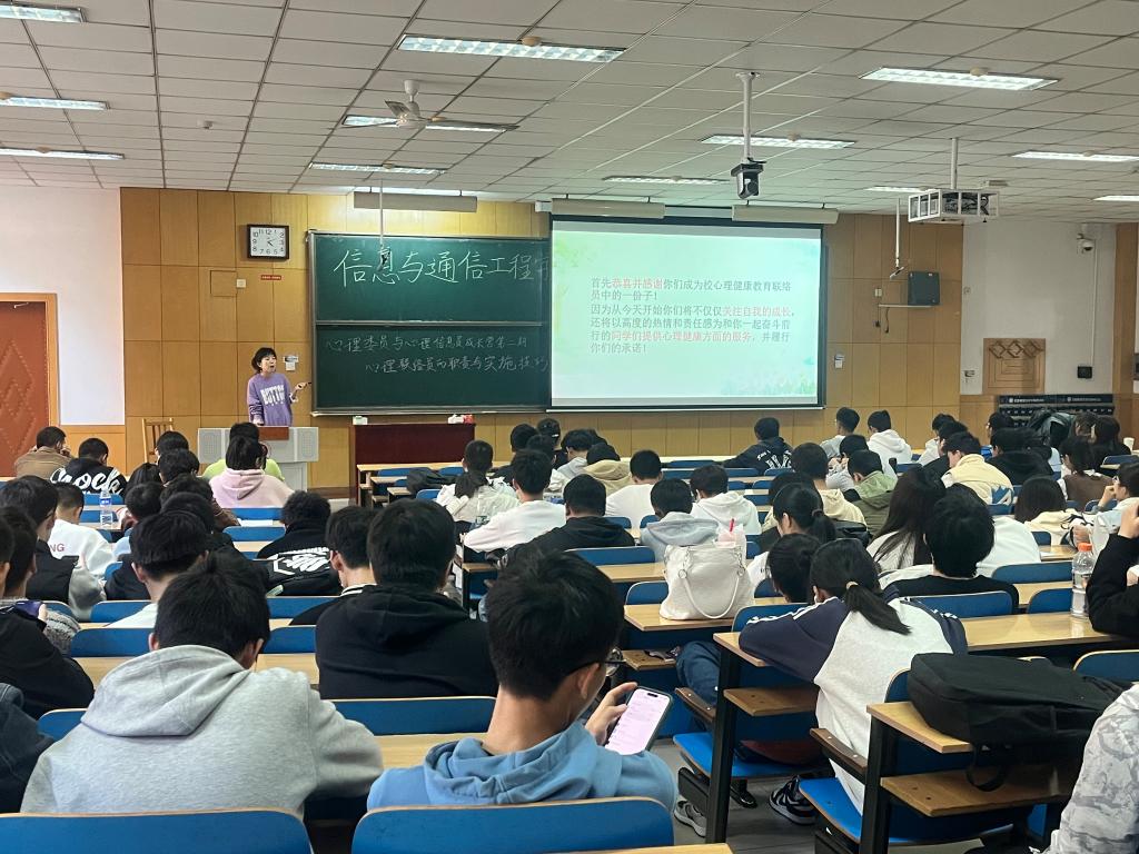 高林老师授课主题为“心理联络员的职责与实施技巧”。她向全体心理委员及宿舍信息安全员介绍了心理委员的工作内容,帮助心理委员明确工作职责,使心理委员和心理信息员对心理健康教育工作有了更加清晰的认识,提高心理委员和心理信息员“朋辈互助”的能力。