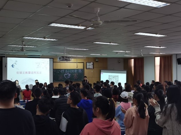 活动首先由王秋惠老师的讲话拉开序幕,王秋惠老师向大家介绍了此活动的意义和期待,并和同学们一起通过玩游戏,使同学们更好的感受了心理的魅力,对活动产生了更浓厚的兴趣。