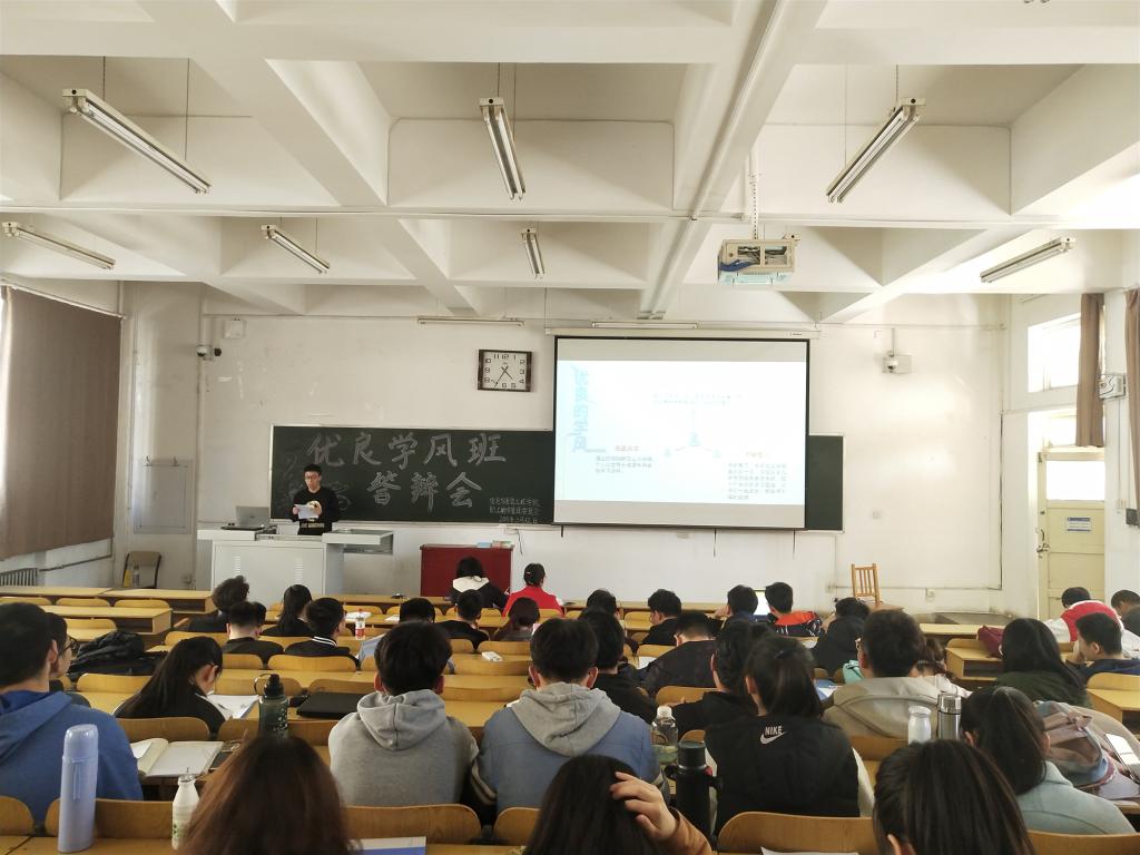 优良学风班的评选细则做了详细解读。接下来,参选优良学风班的22个班级通过PPT等形式从班级建设、学风建设、班级成绩、科技创新活动获奖等方面汇报了班级在学风建设方面取得的优异成绩,充分展示了班级精神风貌。