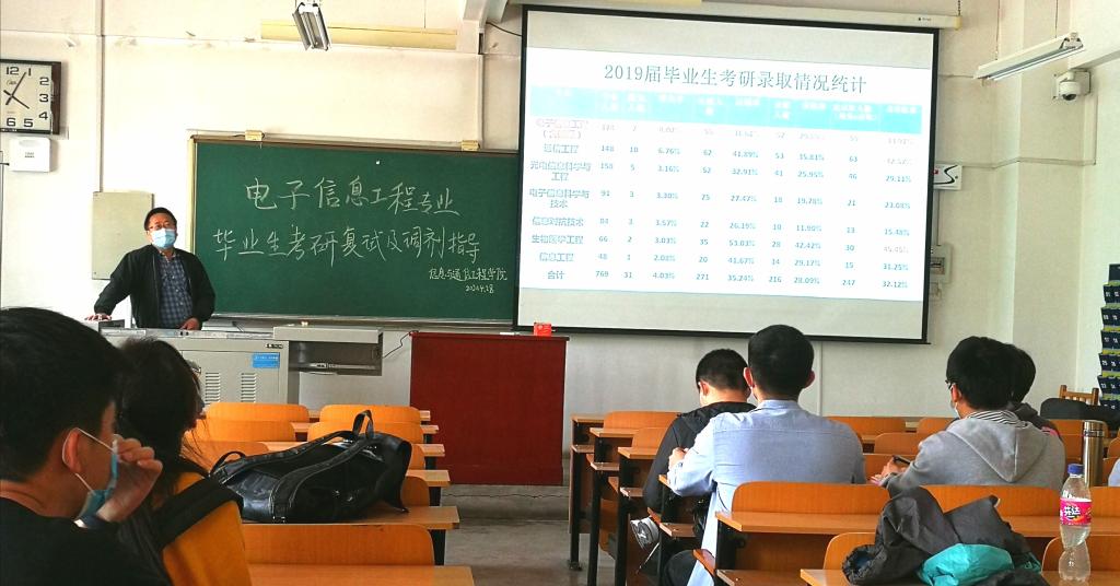 各专业负责人首先介绍了2019届毕业生的升学情况,并对本届毕业生考研成绩进行分析,同时围绕 “疫情期间复试时间和方式的改变”、“复试时要注意什么”、“为何要积极联系调剂院校和老师以及怎么做”、“如何在复试中表现突出” “研究生期间要做什么”等问题做了深入浅出的讲解,开拓了同学们的思路。