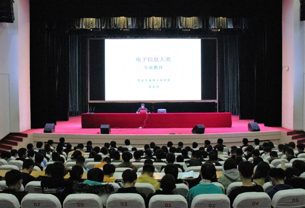 在科艺苑举办电子信息类新生专业教育大会,2020级电子信息类全体新生加了大会。
