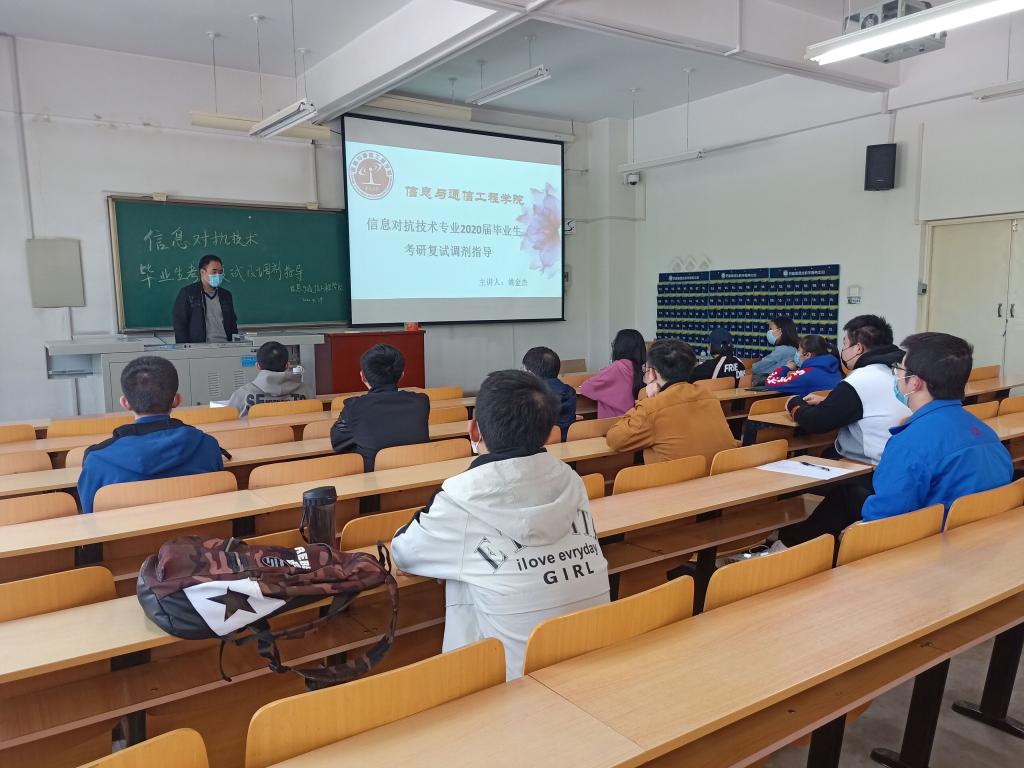 各专业负责人首先介绍了2019届毕业生的升学情况,并对本届毕业生考研成绩进行分析,同时围绕 “疫情期间复试时间和方式的改变”、“复试时要注意什么”、“为何要积极联系调剂院校和老师以及怎么做”、“如何在复试中表现突出” “研究生期间要做什么”等问题做了深入浅出的讲解,开拓了同学们的思路。