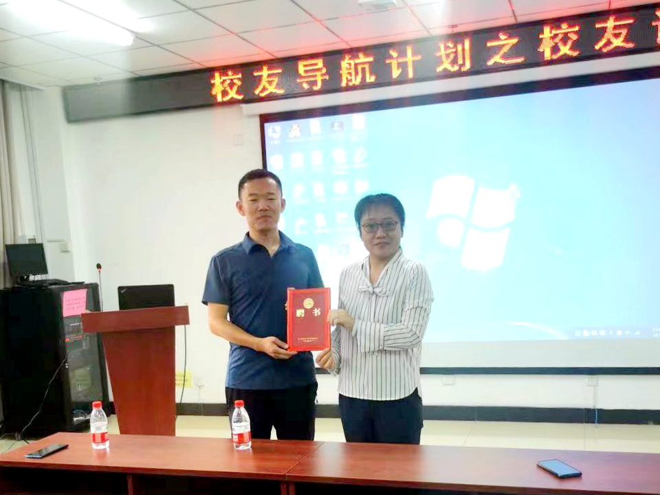 党委副书记魏媛媛为闫晨光校友颁发了“校友导师”聘书。