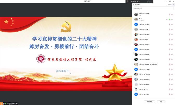 院长杨风暴教授为通信工程专业师生党员做了题为“学习宣传贯彻党的二十大精神 踔厉奋发·勇毅前行·团结奋斗”的专题党课。师生党员采取线下、线上相结合的方式进行收听学习。