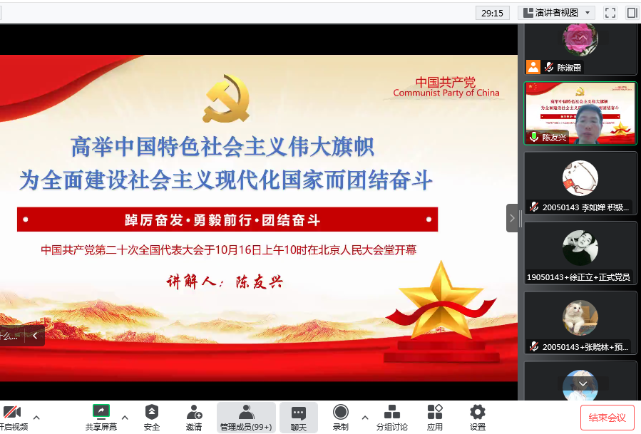 通过党委委员宣讲、支部书记领学、党日活动、主题班会等形式在全院范围内展开学习,推动党的二十大精神入脑入心,见行见效。2022年12月1-12月8日金沙