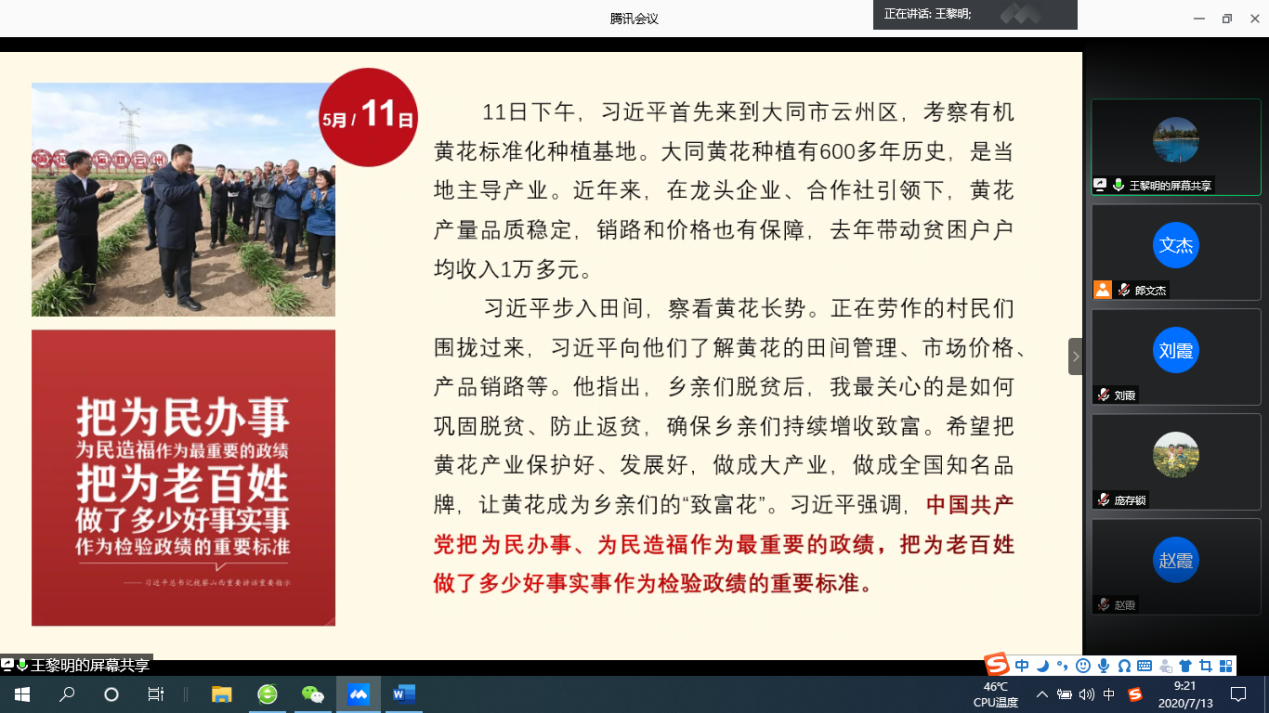 党委委员对接每个支部,于7月10-7月21日,在全院开展了党委委员领学习近平总书记视察山西重要讲话及重要指示精神的活动,通过七场专题领学活动,全力推进习近平总书记视察山西讲话精神及重要指示精神在金沙