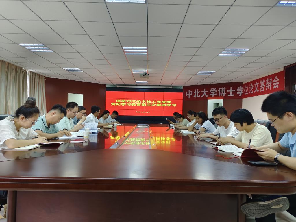 2024年6月20日下午,信息对抗技术教工党支部在无损检测楼201室开展了党纪学习教育第三次集体学习,副校长刘俊以普通党员身份参加了此次学习活动。