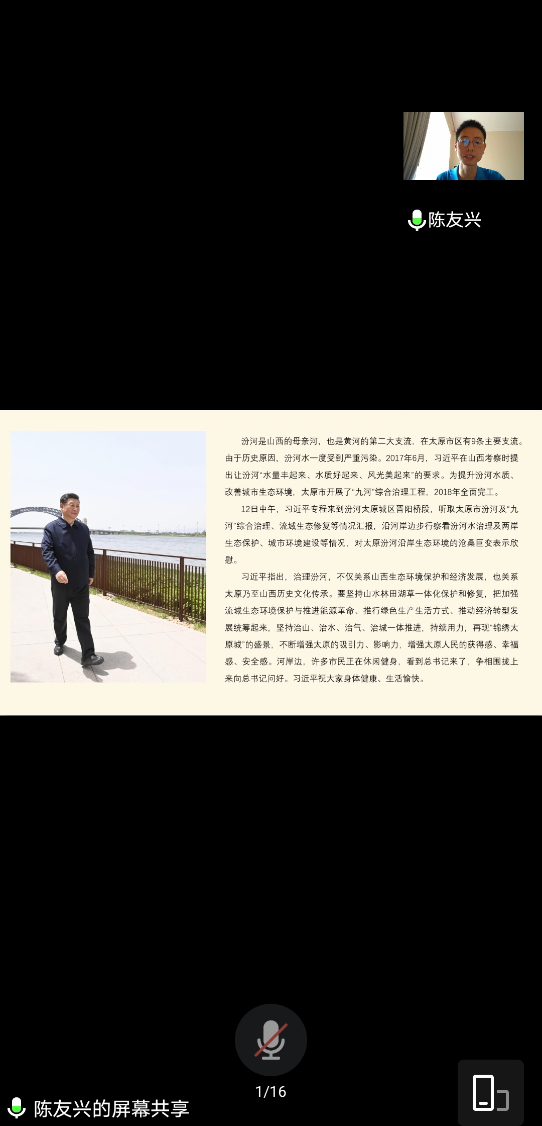 首先,陈老师分别介绍了习近平总书记视察山西所到地点和讲话内容,重点强调我们应该始终把学习贯彻总书记重要讲话内容作为首要的政治任务,坚决以习近平新时代中国特色社会主义思想为指引,坚定不移走中国特色社会主义道路。不到三年,习近平总书记两次来山西视察指导工作,对我省脱贫攻坚工作给予肯定并提出新的要求,更坚定了我们交好收官总账,决战完胜的信心决心。