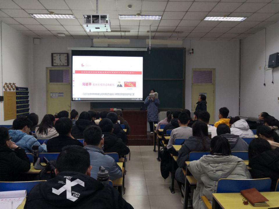 邢杰老师对《习近平谈治国理政》第三卷出版的意义、涵盖内容、学习方法进行了解读。接着,张佳淼和张天宇两位同志对第四专题《坚持以人民为中心》的两篇文章进行了领读,通过读原著、学原文、悟原理的形式,使广大同学深刻体会到我党全心全意为人民服务的根本宗旨,充分展现了以人为本、人民至上的价值取向,深刻践行了立党为公、执政为民的执政理念。
