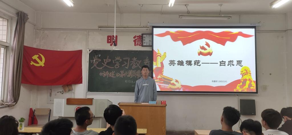 2021年5月22日下午4点在11206Z教室,电子信息工程专业学生党支部举办了《讲述》第六期党史学习教育活动,本期讲述“英雄模范”的榜样故事。