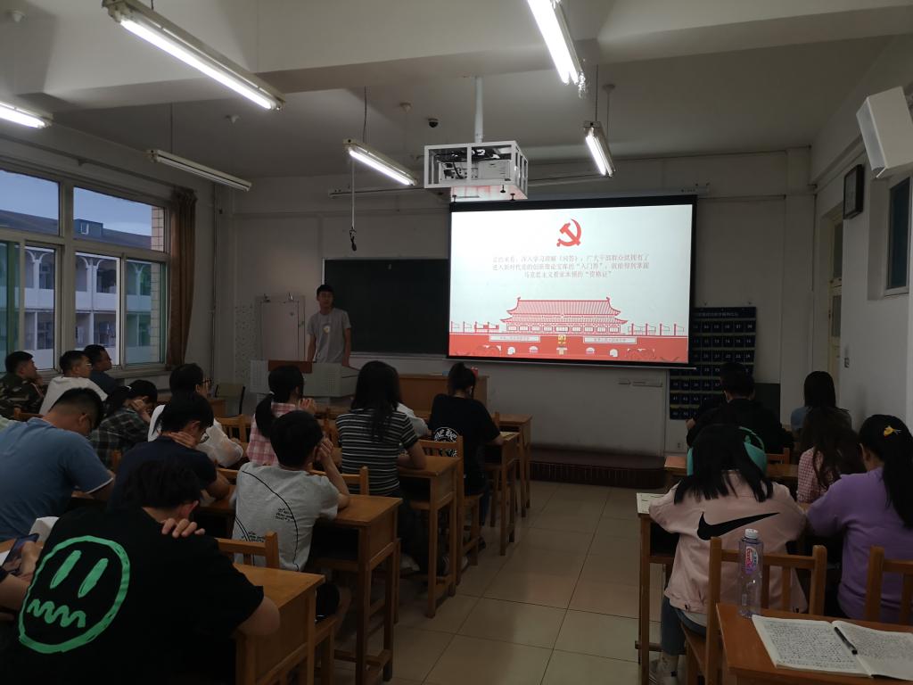 为深入学习贯彻习近平新时代中国特色社会主义思想和党的十八大以来的历史成就,深化政治理论学习,切实推动党的创新理论入脑、入心、入行,我支部于5月25日晚7点30分在10402z教室开展第五次主题党史教育学习活动,并深入研读《习近平新时代中国特色社会主义思想学习问答》。